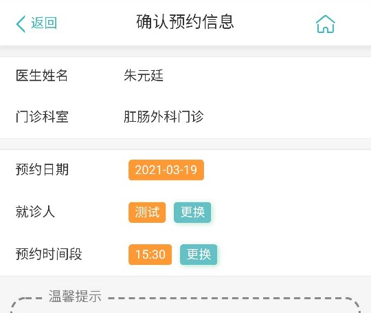 第五步 提交确认信息,并完成预约。到医院挂号处提供预约信息